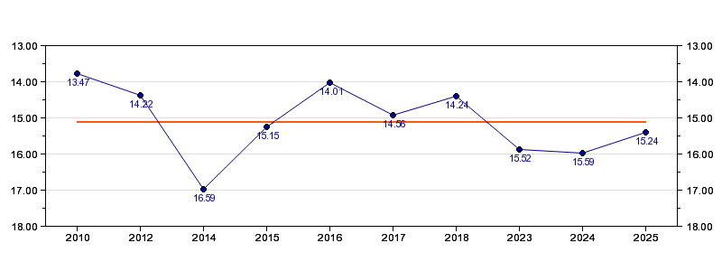 Antall deltagelser10 (i perioden 2010 - 2025)