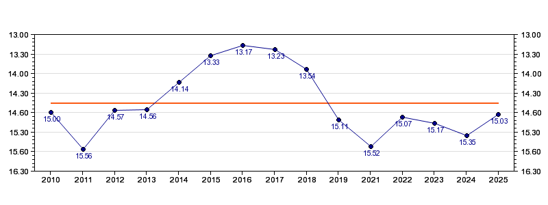 Antall deltagelser15 (i perioden 2010 - 2025)
