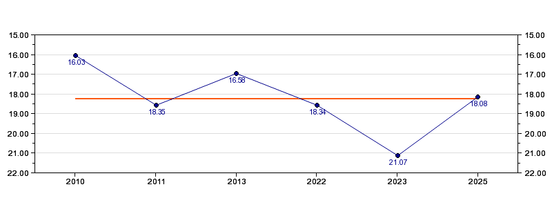 | Antall deltagelser | 6 (i perioden 2010 - 2025) |