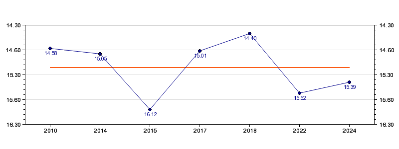 | Forrige tid | 15.39 (2024) |
