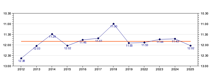 | 2025 | Kalkulator | 12:02 (1502 m/h) | 01:56 (1669 m/h, 111 %) | 05:33 (03:37, 1521 m/h, 101 %) | 10:35 (05:02, 1362 m/h, 90 %) | 12:02 (01:27, 1721 m/h, 114 %) |
