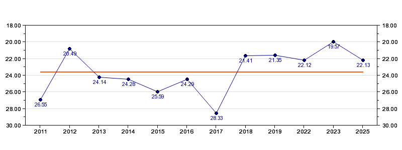 Antall deltagelser12 (i perioden 2011 - 2025)