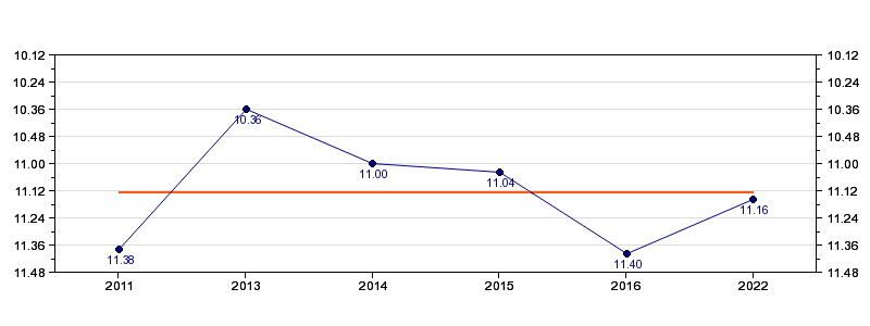 | Forrige tid | 11.16 (2022) |