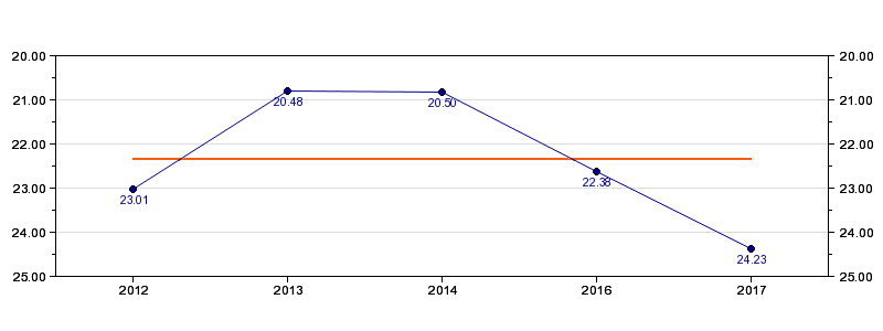 | 27.09.2014 | 20.50 | 13.07.2016 | 25.56 | 20.07.2016 | 24.09 | 20.07.2016 | 24.57 | 01.09.2016 | 24.24 | 24.09.2016 | 22.38 |
