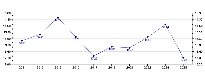 Antall deltagelser10 (i perioden 2011 - 2025)