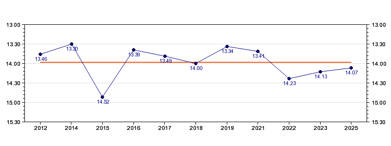 Antall deltagelser11 (i perioden 2012 - 2025)