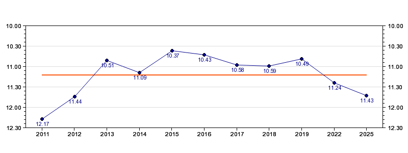 Antall deltagelser11 (i perioden 2011 - 2025)