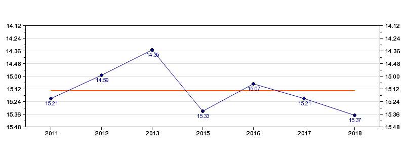 | Forrige tid | 15.37 (2018) |