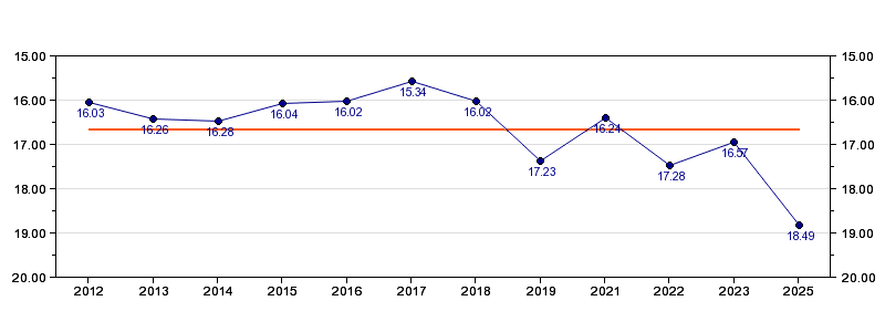| 2025 | Kalkulator | 18:49 (961 m/h) | 03:03 (1058 m/h, 110 %) | 08:53 (05:50, 943 m/h, 98 %) | 16:09 (07:16, 943 m/h, 98 %) | 18:49 (02:40, 936 m/h, 97 %) |