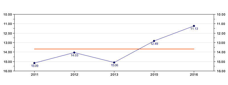 | Forrige tid | 11.13 (2016) |