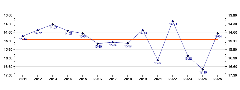 Antall deltagelser14 (i perioden 2011 - 2025)
