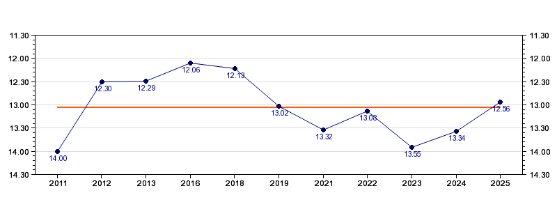 | Antall deltagelser | 11 (i perioden 2011 - 2025) |