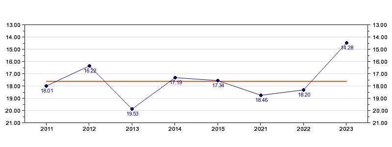 | Forrige tid | 14.28 (2023) |