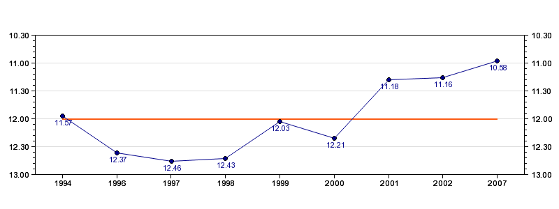 Antall deltagelser9 (i perioden 1994 - 2007)