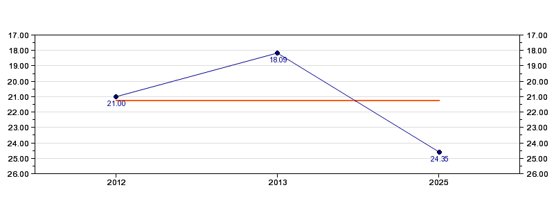 | Forrige tid | 24.35 (2025) |