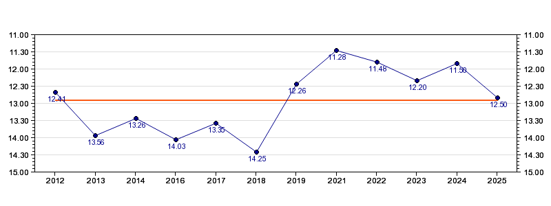 Antall deltagelser12 (i perioden 2012 - 2025)