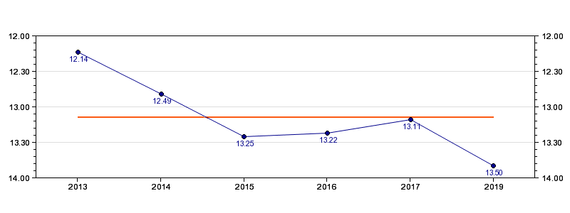 | Forrige tid | 13.50 (2019) |