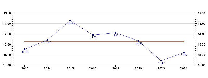 Antall deltagelser8 (i perioden 2013 - 2024)