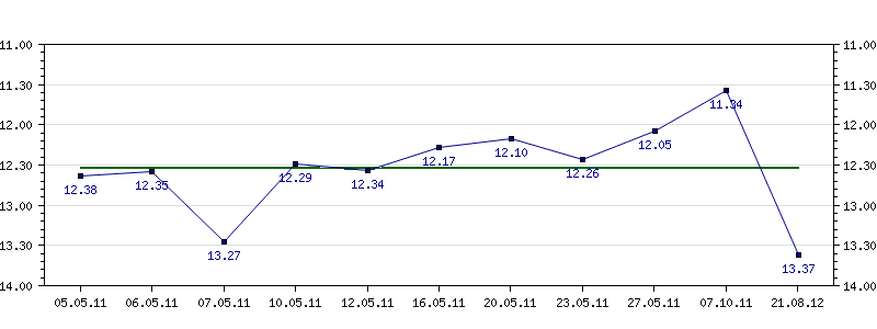 | 05.05.2011 | 12.38 | 06.05.2011 | 12.35 | 07.05.2011 | 13.27 | 10.05.2011 | 12.29 | 12.05.2011 | 12.34 | 16.05.2011 | 12.17 |