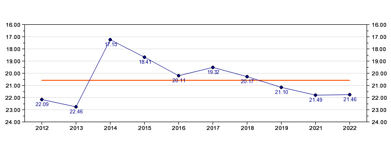 | Forrige tid | 21.46 (2022) |