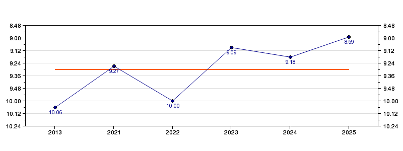 | Forrige tid | 08.59 (2025) |