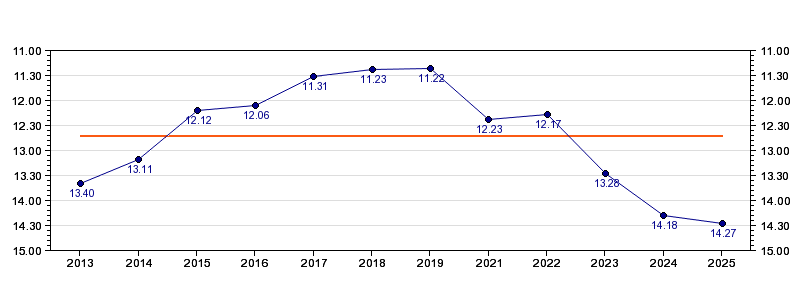 Antall deltagelser12 (i perioden 2013 - 2025)