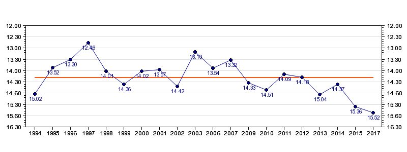 | Antall deltagelser | 20 (i perioden 1994 - 2017) |