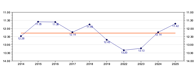Antall deltagelser10 (i perioden 2014 - 2025)