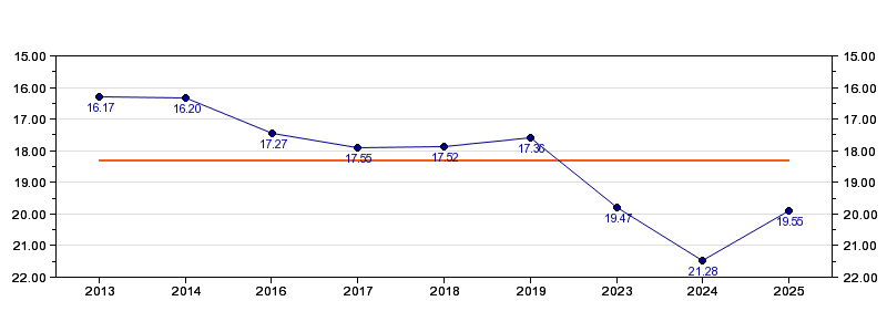 Antall deltagelser9 (i perioden 2013 - 2025)