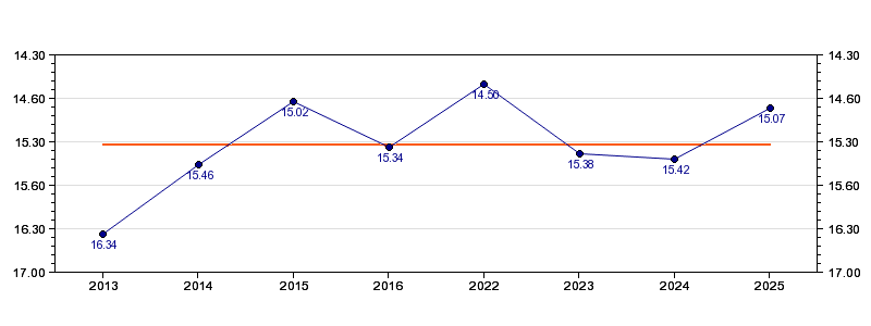 | Antall deltagelser | 8 (i perioden 2013 - 2025) |