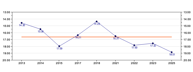 | Forrige tid | 18.51 (2025) |