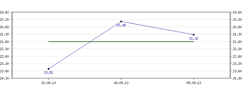 | 22.08.2013 | 23.52 | 04.09.2013 | 20.38 | 05.09.2013 | 21.32 |