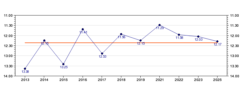 | Antall deltagelser | 11 (i perioden 2013 - 2025) |