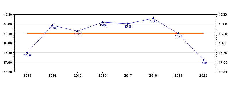 | Forrige tid | 17.53 (2025) |
