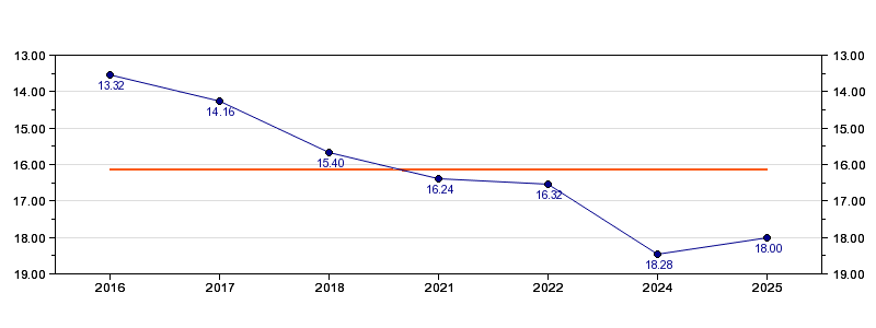 Antall deltagelser7 (i perioden 2016 - 2025)