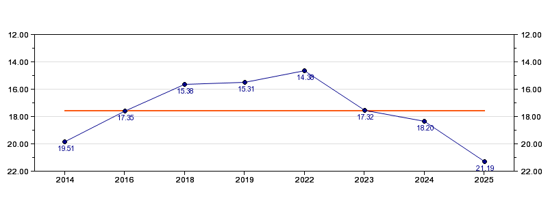 Antall deltagelser8 (i perioden 2014 - 2025)