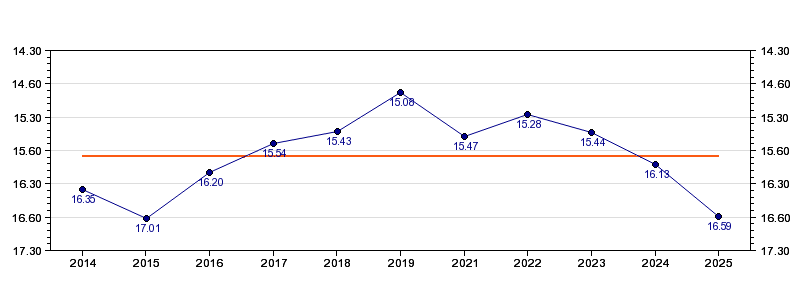 Antall deltagelser11 (i perioden 2014 - 2025)