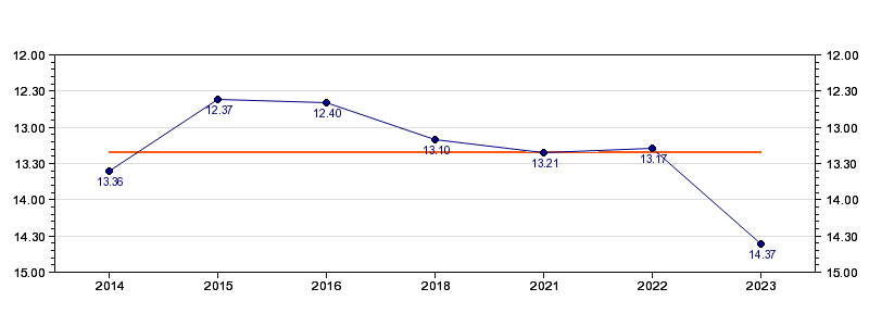 | Forrige tid | 14.37 (2023) |
