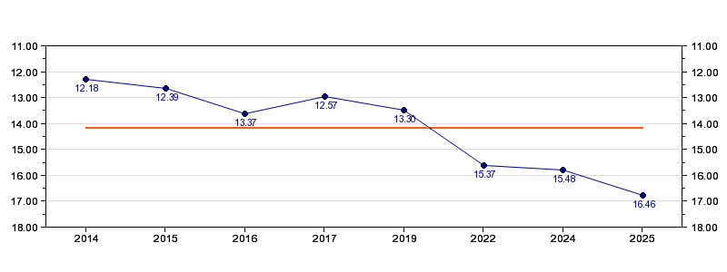 | Forrige tid | 16.46 (2025) |